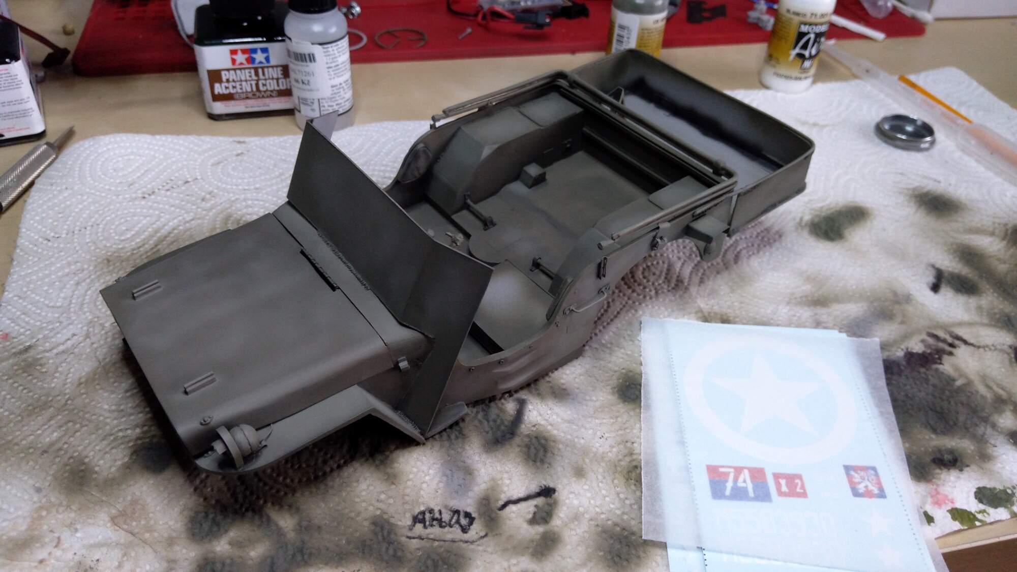 Mnoooo v tomhle určitě poradí Hraničák, nedávno barvil Stuarta a má to moc pěkně udělaný. Nebo koukni na youtube kanál MIGa Jimmeneze, určitě tam bude mít i barvení americké techniky. Já bych mohl poradit až budu barvit Shermana