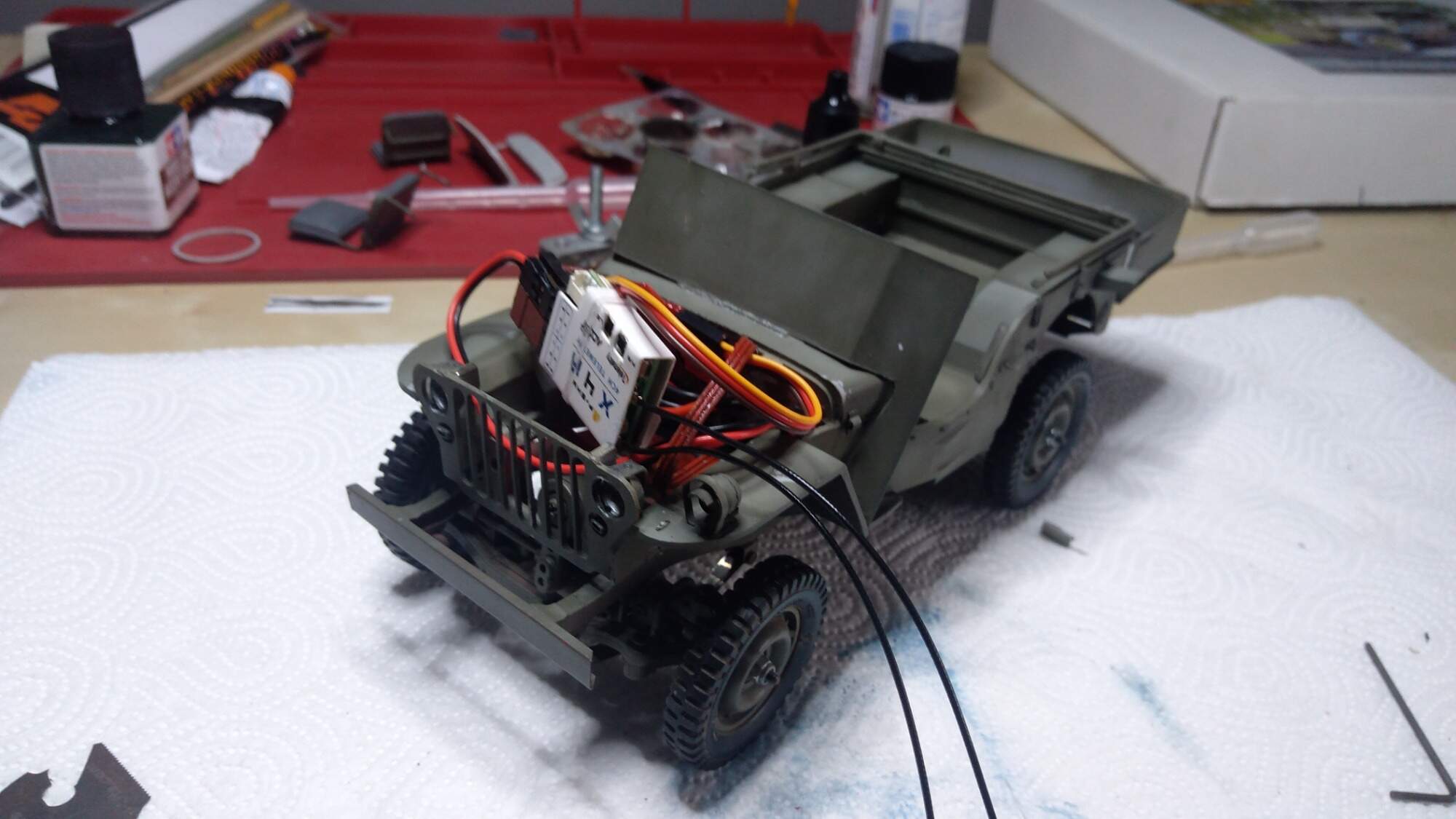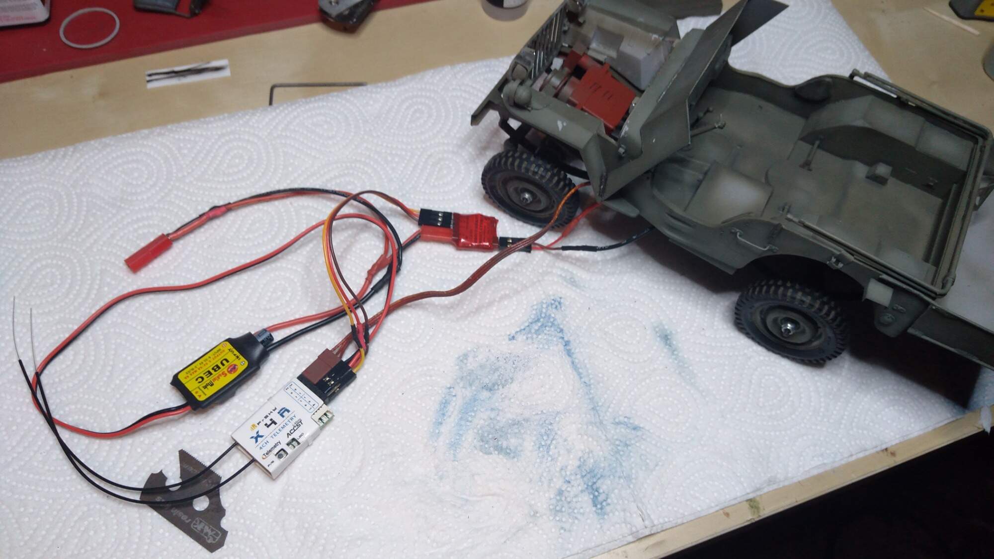 Tak převodovku jsem upravil a už chodí o hodně lépe než před tím, a taky jsem do Jeepa koupil nový přijímač od frsky - x4r. Teď už to jen nějak narvat do karoserie.