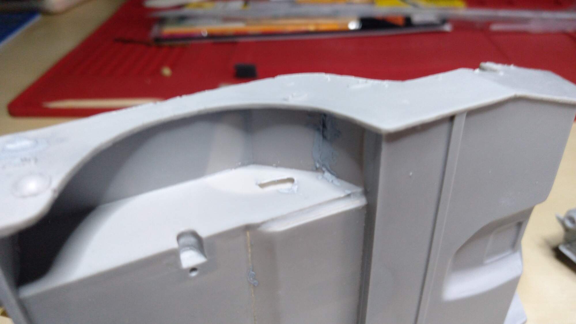 Přidám pár fotek z toho jak jsem pokročil. Odlitky jsou pěkné, místy jsou menší bublinky, jen na největším dílů karoserie je taková veliká bublina, ale chápu že ty větší kusy se špatně odlévají, jinak se mi stavebnice moc líbí