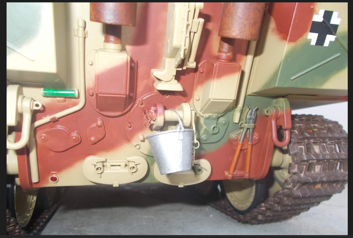 upravy: dozadu posunute prevodovky, loziska na oskach prednych kolies, vymenena led v prednom reflektore, svietiace kolonove svetlo, biela led v gulomete, dole posunuty priezor sofera, nove kryty priezorov na streche, otvaraci maly priklop vzadu na korbe, nove lana, prevrtane vyfuky- dym prechadza celym vyfukom ako u skutocneho ,presunute naradie, figurka tankistu je prichytena magnetmi - moze byt umiestneha v oboch priklopoch, ....