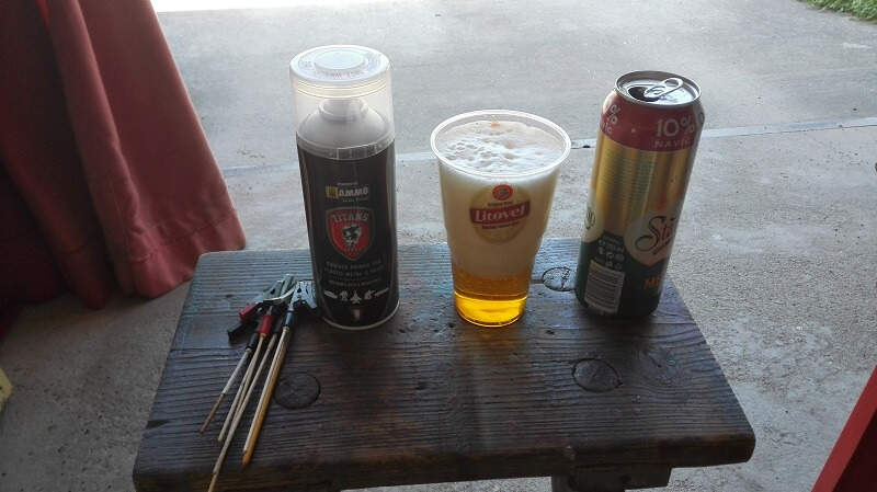 Nakonec jsem kola doma dostříkával airbrushem a "gumovej" běhoun dodělával štětcem.