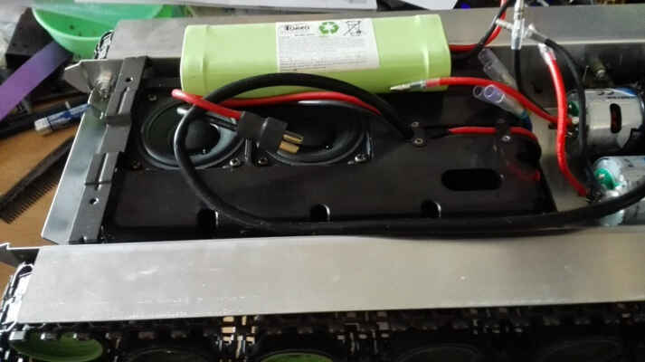 No když byly podsestavy hotové tak se vše vmontovalo do vany, na zadní část se daly převodovky, na ramena kola, napínací a hnací kola na hřídele a završilo se to montáží pásů. Zce opět přišla na řadu "operace očního nervu přes zadek".napínání pásu je řešeno ramenem s šestiúhelníkovým zakončením které se zasunuje do šestiúhelníkového otvoru v korbě......člověk musí být tak trochu hentai tentacle chobotnice aby dokázal držet korbu, pod patřičným úhlem rameno s napínacím kolem a na to ještě nasazovat pás a zajistit rameno šroubem s imbusovou hlavou zevnitř kde zavazí bedna s reprákama.........jako sprostých slov na adresu japonců letělo hodně, ale nakonec se to povedlo. Člověk totiž občas místo své modelářské intuice musí věřit návodu